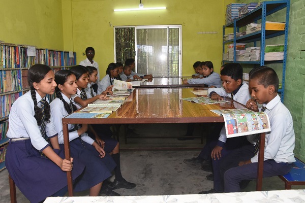 The school library is a treasury of knowledge supplying various study materials to the ever-curious minds of growing childern.Our school has a well equipped library with a host of magazines and books to choose from.Additional and reference reading habit needs to be nourished from a very primary level to help the students gain supplementary knowledge as well as to develop reflective and comprehensive reading skills of different literary pieces and articles in them.So,library period is given as an important part of the school curriculum,in a spacious,airy and well lit room with an ambience truly appropriate for this activity.During this period,children enjoy a fun -filled reading of stories,poetries,novels,comics,moreover,newspapers and magazines to update their current affair knowledge.